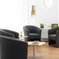 This understated design combines smooth lines and finely detailed upholstery to create classic reception furniture.