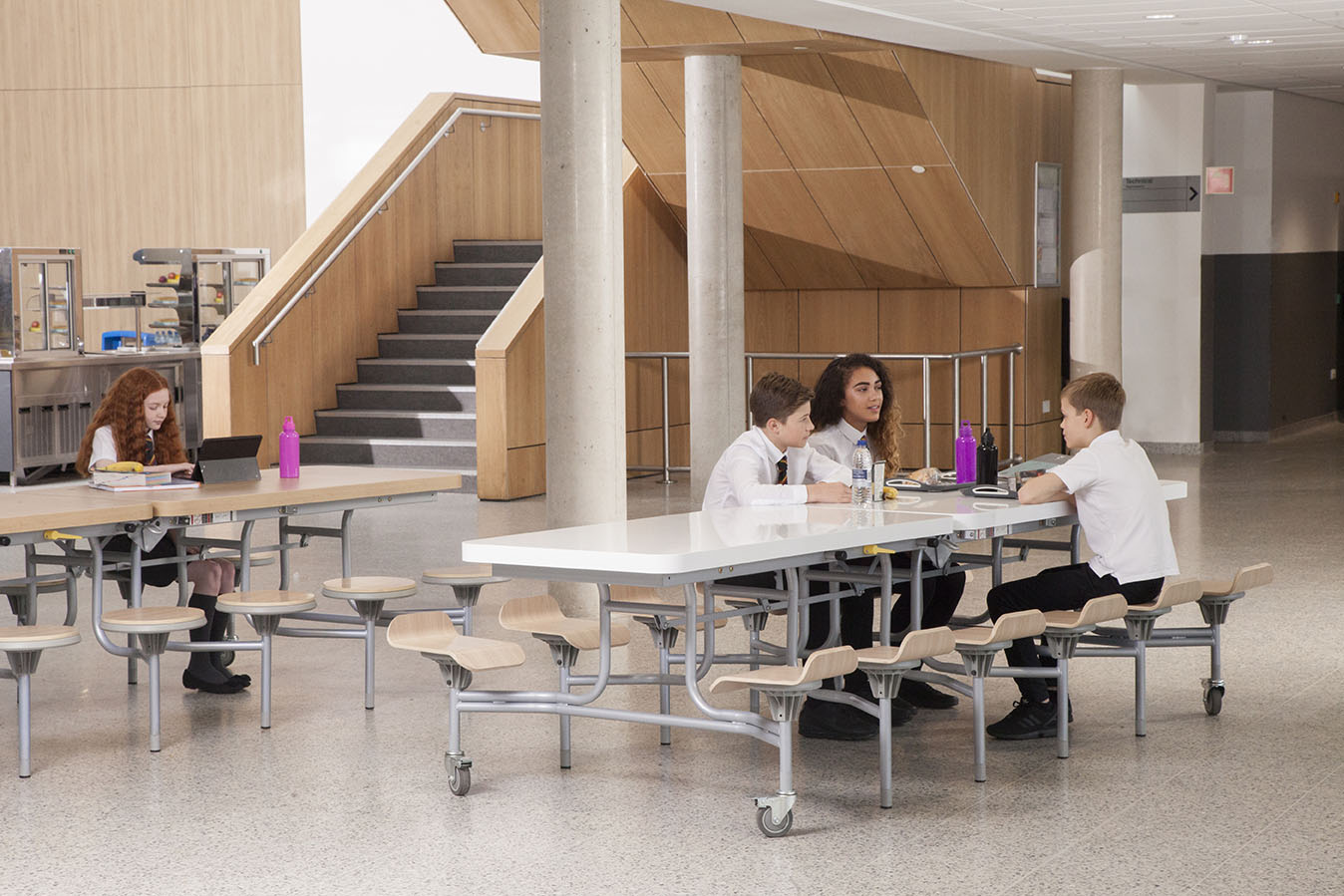 A robust range of fastfood seating specifically developed for use in canteen areas. Hardwearing and easy to clean, our range of canteen seating and tables are available in 2, 4 and 6 seat options.