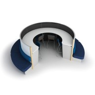Guru is a popular variation of the classic meeting pod. Touchdowns are provided on the concave inner face of the screen for IT based group study. The outer convex seating is