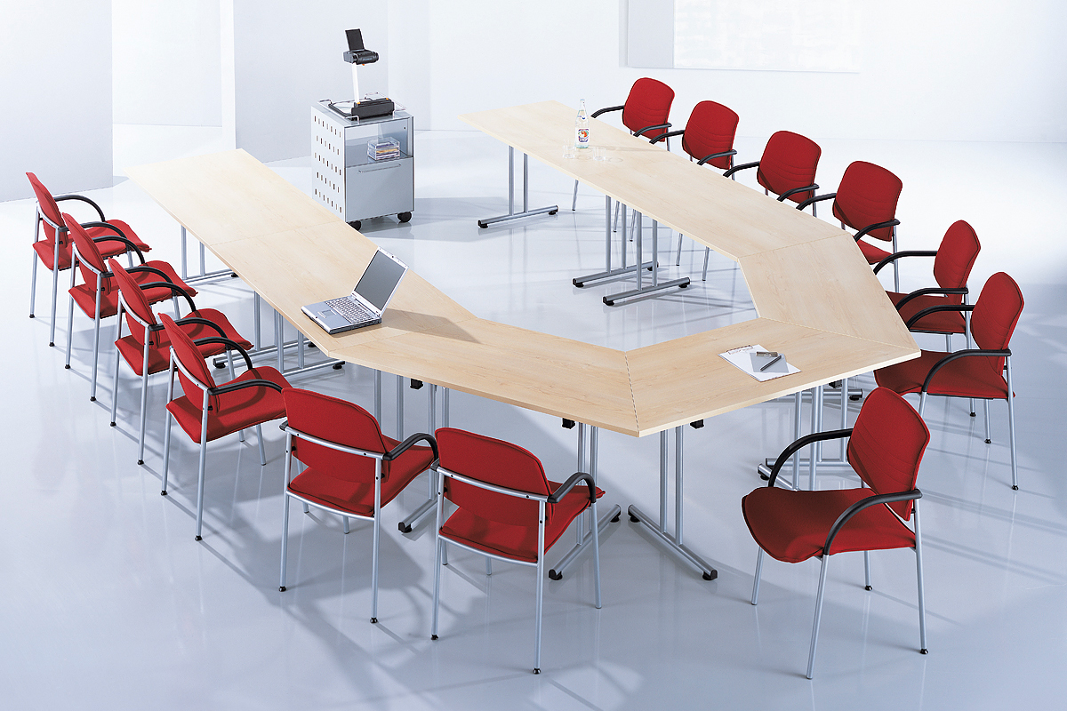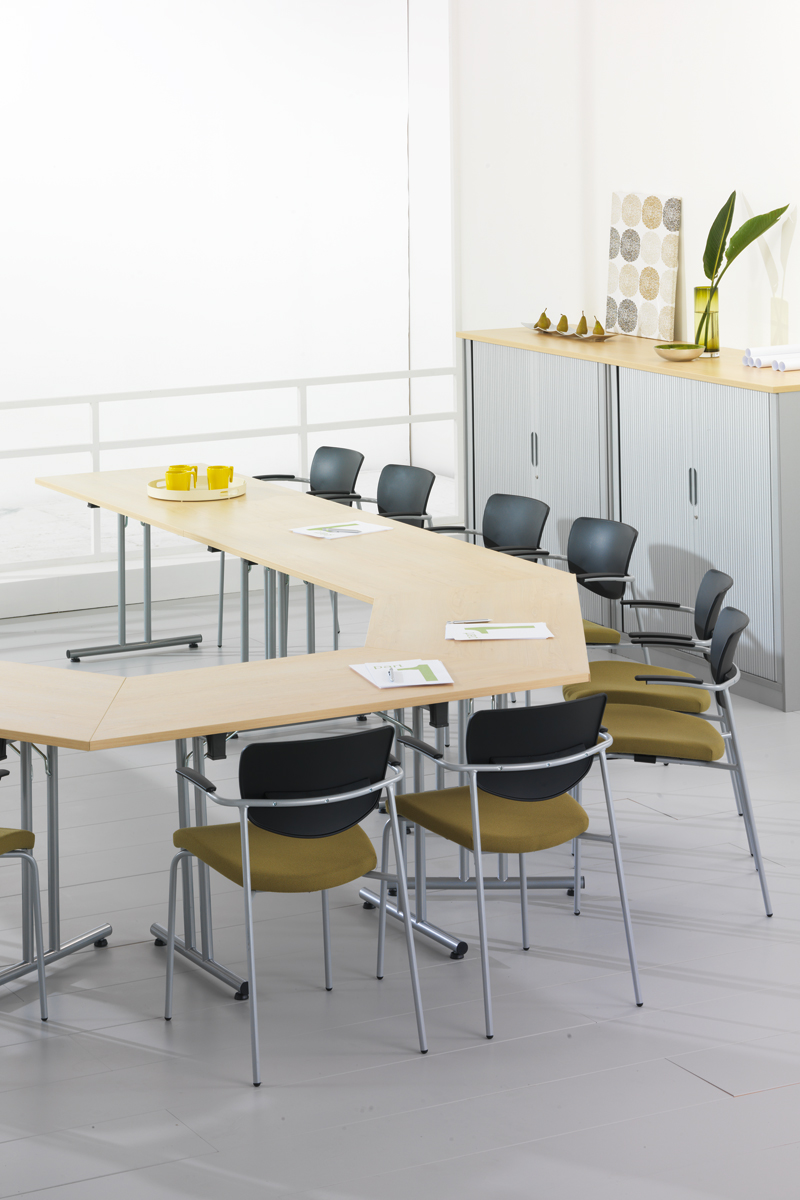 This is achieved through a wide choice of table shapes, thicknesses, finishes and table support frame designs with flexibility as the major criteria. The collection can be quickly assembled, rearranged, stacked and stored, saving space and time. There is also a range of ancillary presentation furniture and seating designed to enhance the Training, Presentation and Conference environment.