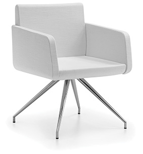 Its distinctive form and shape is a variation on the classic tub chair and combined with a variety of Chrome bases, including auto-return swivel, makes it the perfect seating solution for designers and specifiers alike.