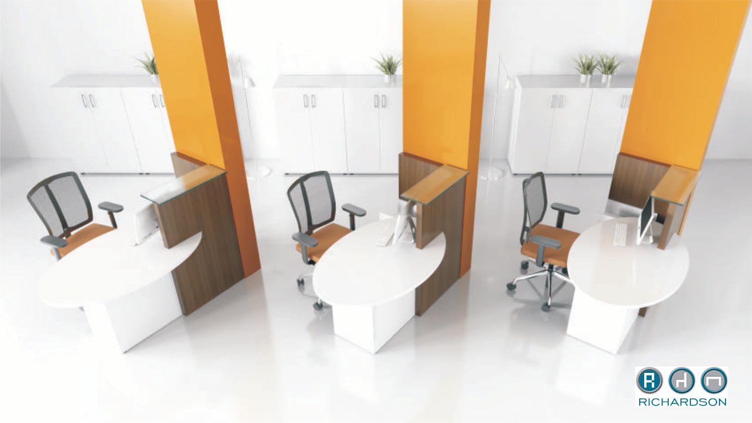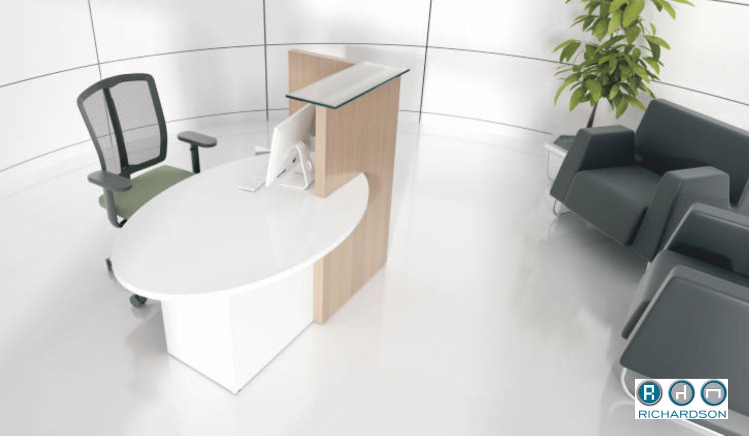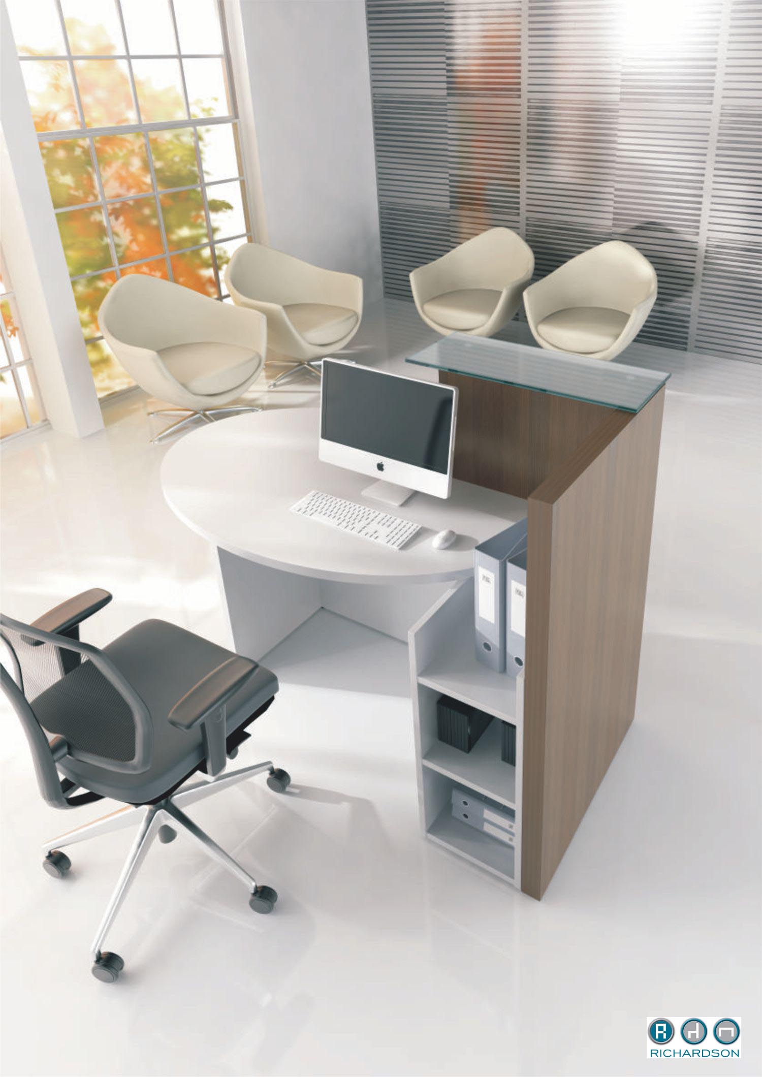 Ovo is a multifunctional Reception Counter dedicated to small rooms or customer service environments. Due to a lowered desk top it is easy to communicate with a client in a sitting position. The common part of the Reception Counter top allows to deal with documents easily and provides trouble free communication. The lifted part of the Reception Counter includes an hidden computer stand and the vertical shelf for files and documents. Apart for ergonomics the Ova Reception Counter offers an interesting form connecting a white oval of the counter of the desk top with a dark rectangle of the body and the frontal part of the furniture produced in two optional colours – cocoa and chestnut.