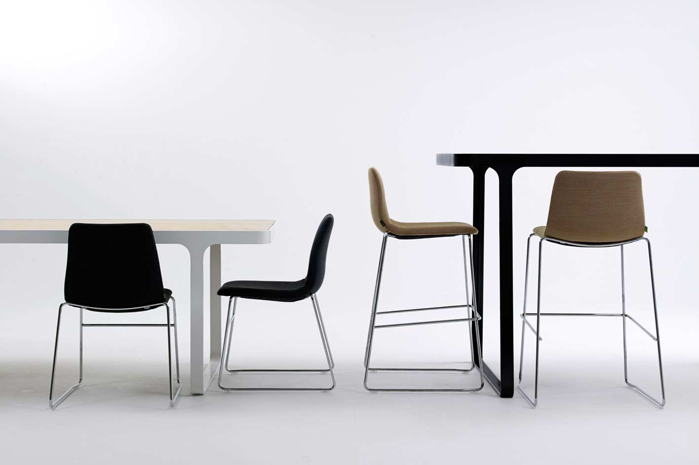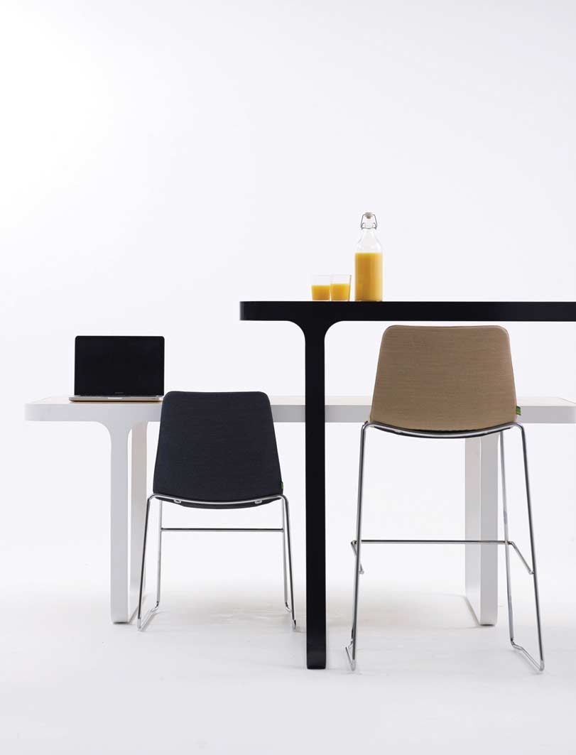 Simple and very comfortable, the Viv chair’s paired down shape is highlighted by its tight upholstery, cleverly held deeply into the bucketed seat. Viv was motivated by quality and function and the range of chair, barstool, and lounge chair are a welcome addition to any space, especially as their fully upholstered form can be easily altered with a change of fabrics.