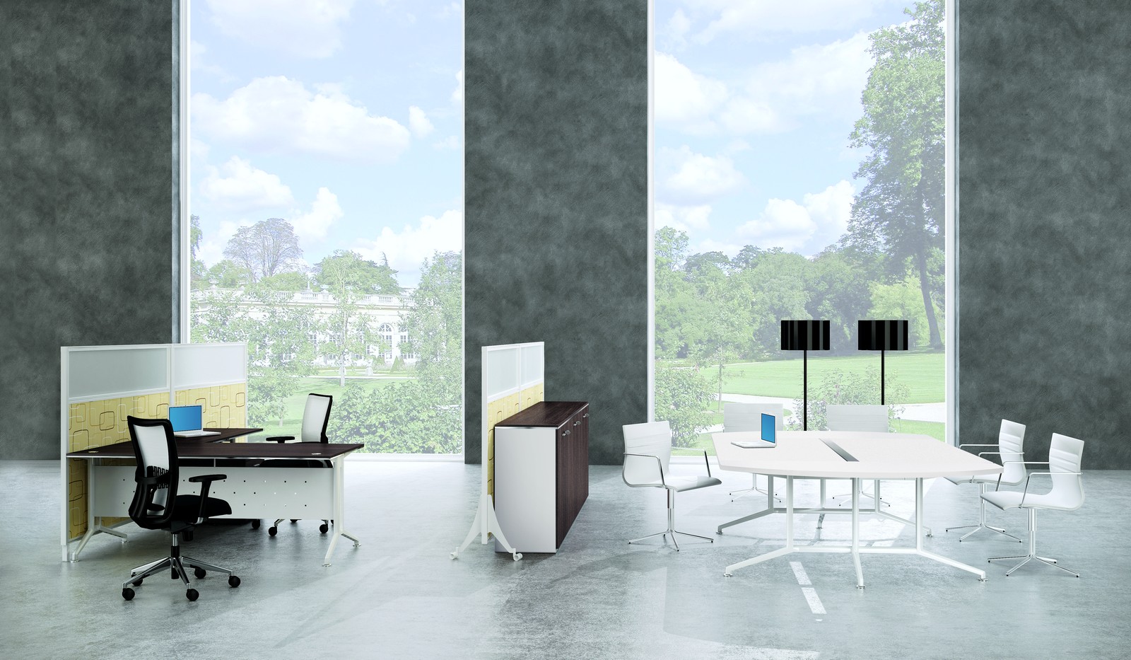 The efficiency of X2 allows you to set up complex and functional working areas. From simple integrated elements, you can get, step by step, modular desks and also aggregated and side by side desks.